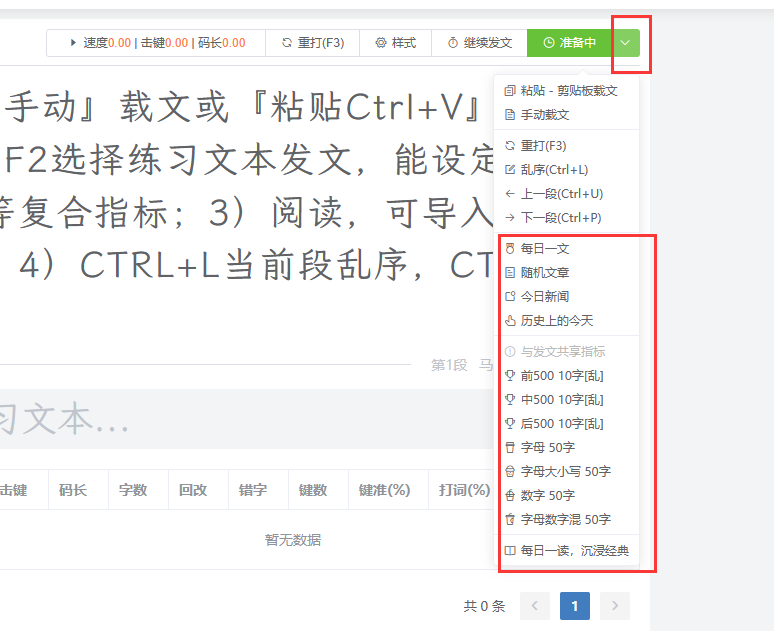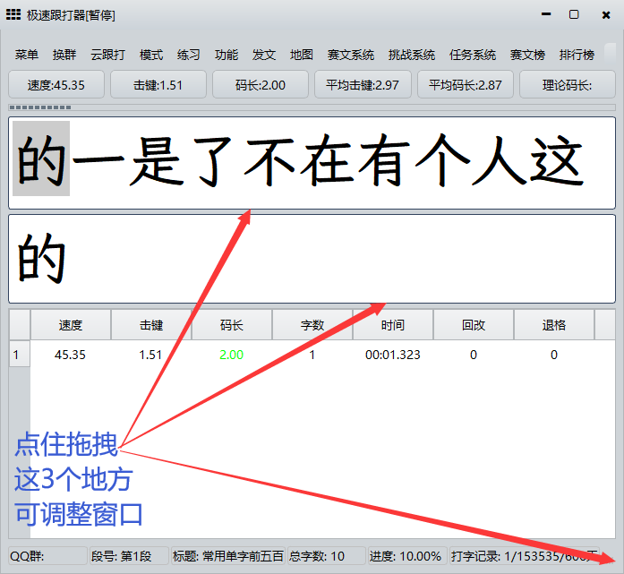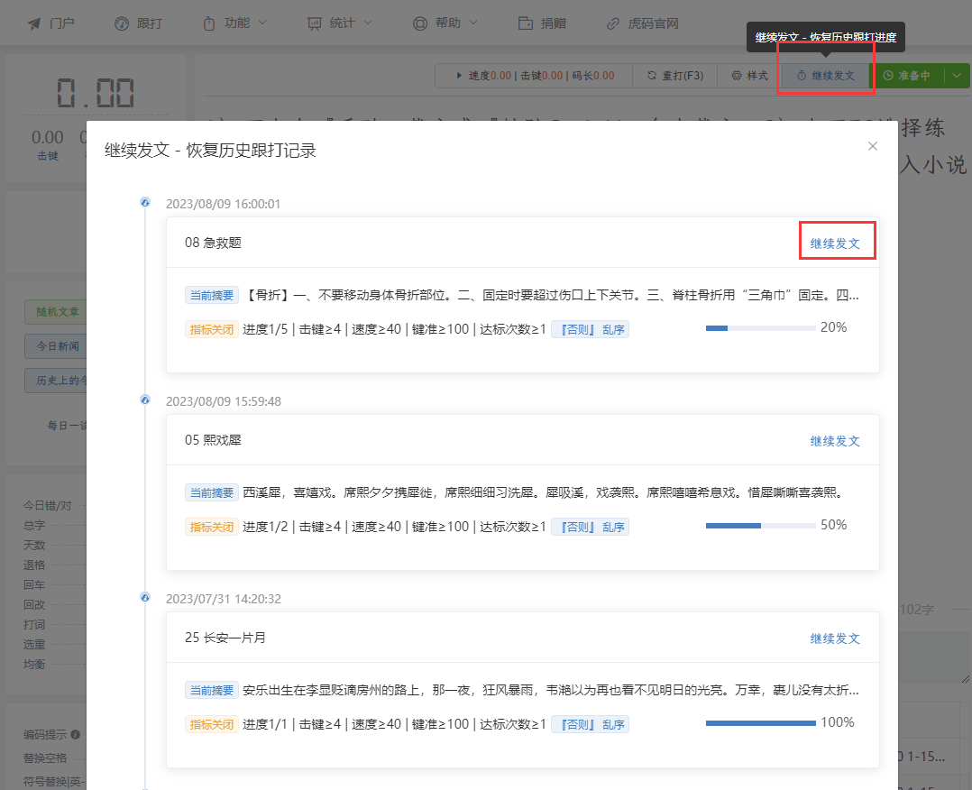 这里会保存你最近10次的跟打进度,可以是文章,也可以是单字分组练习