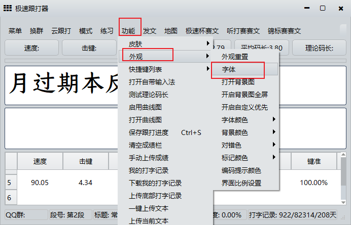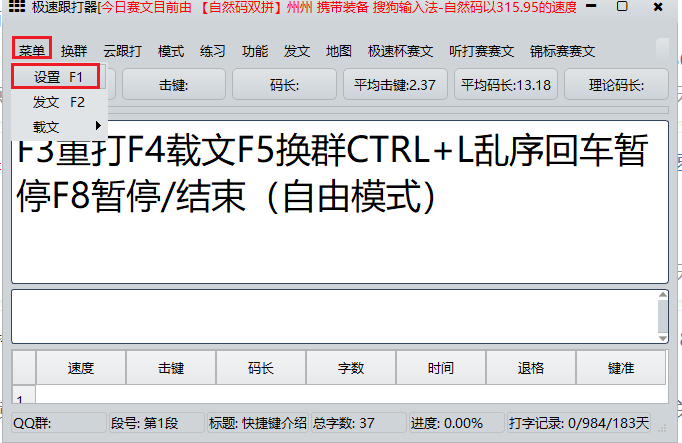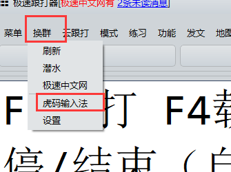 然后你按一下 F4 ,跟打器就可以从群里载文,打完后会自动发成绩(如果你不想自动发,可以在 换群 里点 潜水 ),发了成绩后,机器人会