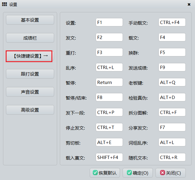 可在 未达标时『或』有错字 后,设置成 重打 ,就不会被打乱了