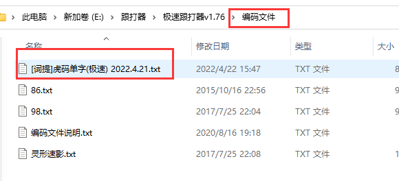 在极速跟打器的文件夹里,有个 编码文件,把编码文件放进去