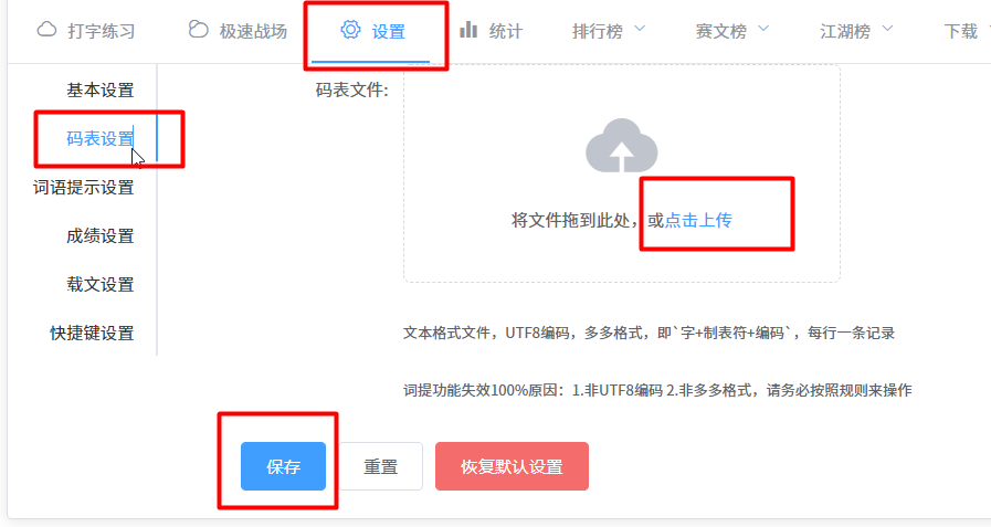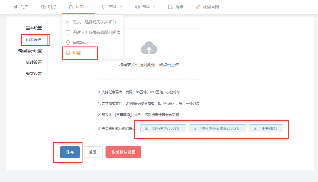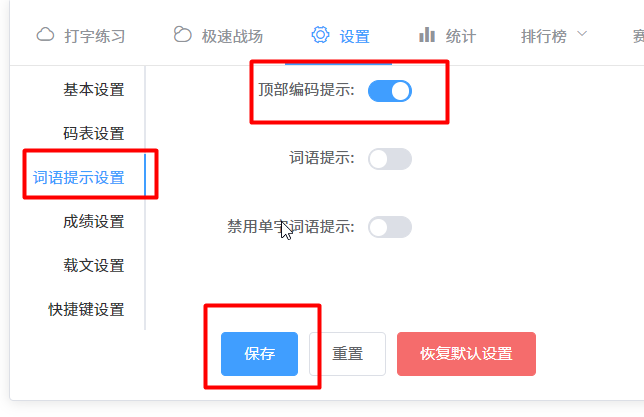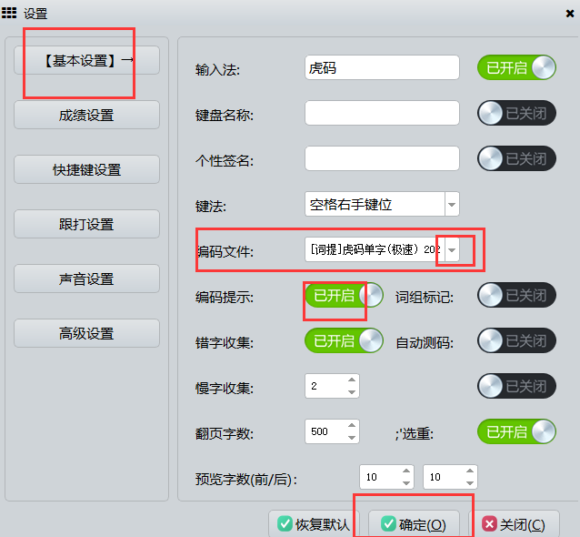 打开 极速跟打器,在 基本设置 中 ,开启 编码提示 ,选择之前放进去的 编码文件