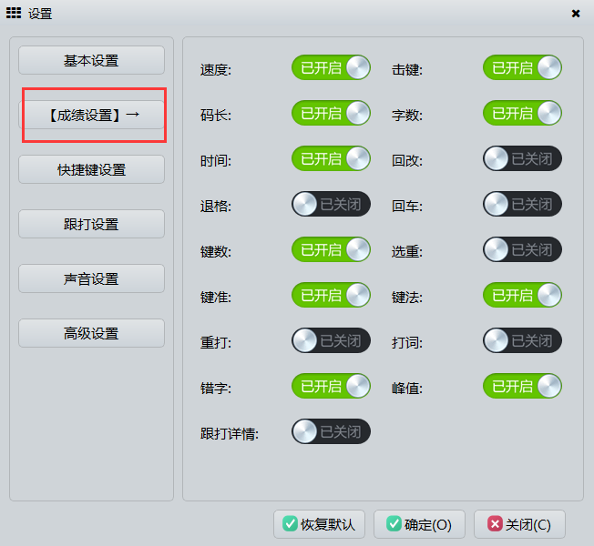 勾选 开启指标 → 击键设置成 3 ,键准 100,达标次数 1